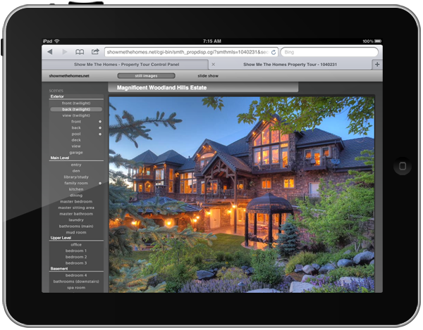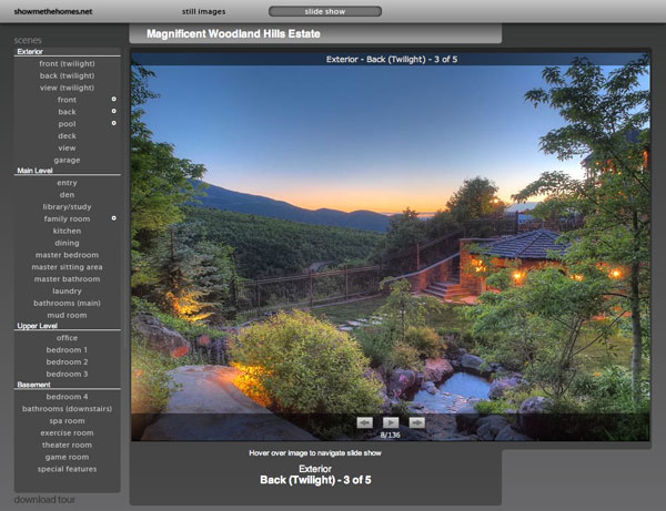 Whether you experience a SmartShowing Tour™ on a personal computer or mobile device, users can click or touch on the right half of the main image to advance to the next image or scene, or on the left half to go back. |